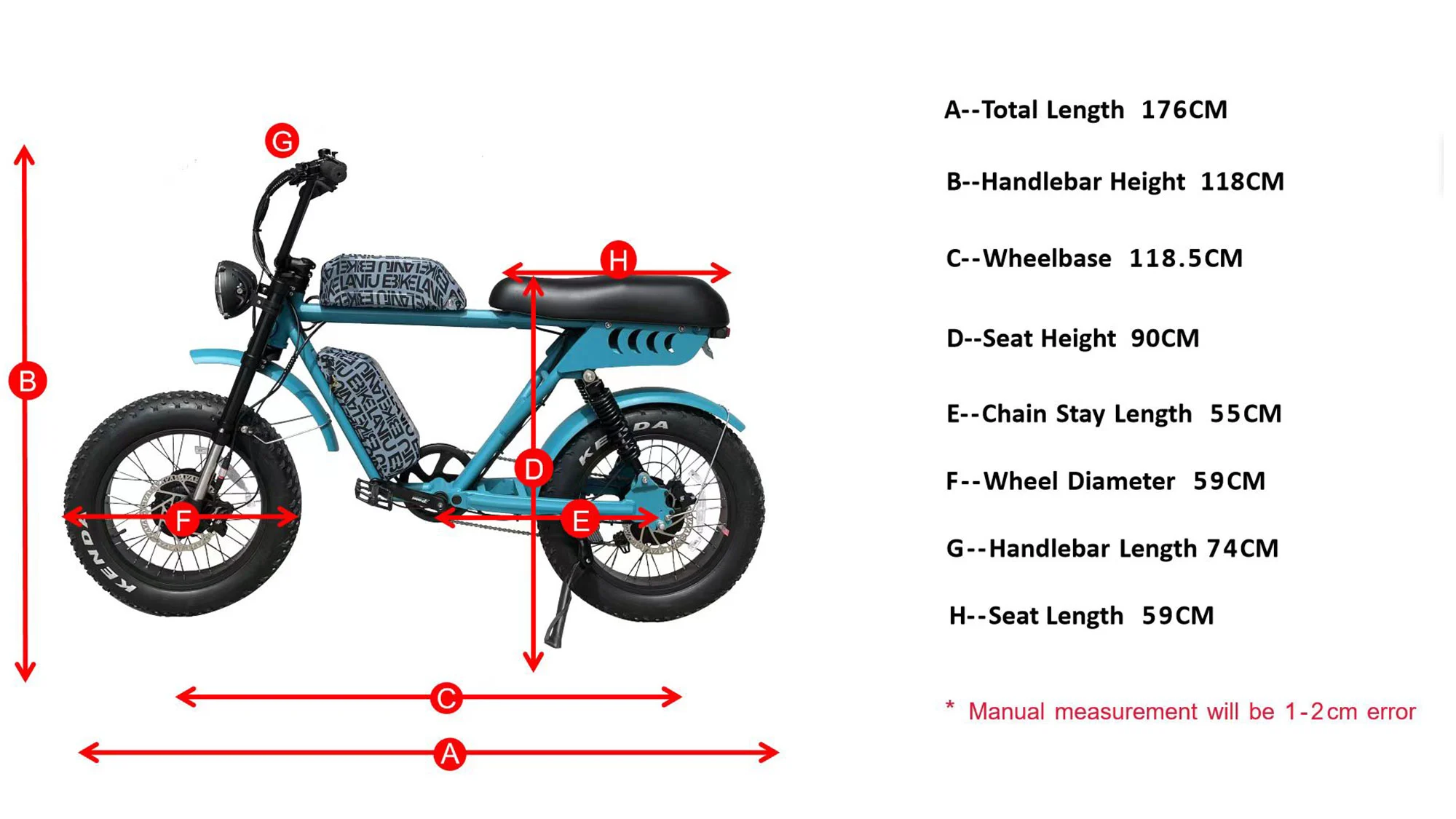 Batería dual la construida - En 52V/17.5AH Lithium - La batería de iones se carga completamente en 7 - 8 horas y proporciona un rango promedio de 55 millas. La batería se puede quitar para una carga conveniente. ¡No hay necesidad de llevar su e - bicicleta a una salida!